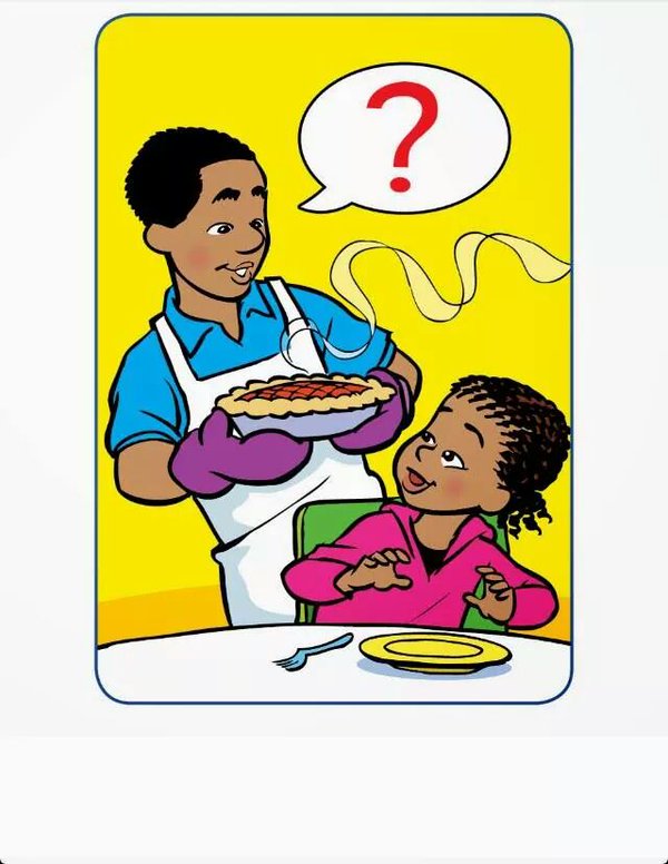 - لماذا : تشمل إجابات الاطفال صوراً و كلمات لسؤال مثل : » لماذا يستخدم الناس الفرن؟ » و يمكن وضع صور طعام ساخن أو خبز ساخن .